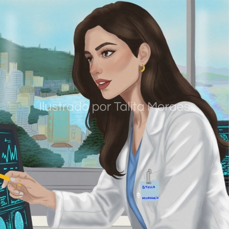 Stella Marino é a personagem principal. O livro não explora profundamente, mas desde muito pequena Stella conviveu com o luto. Perdeu a mãe aos três anos, vítima de um câncer, e, mais tarde, o pai, em decorrência de sequelas de um AVC. Essas experiências moldaram seu sonho de revolucionar a pesquisa e a medicina, movida pelo desejo de que outras famílias não precisem enfrentar o que ela enfrentou.
